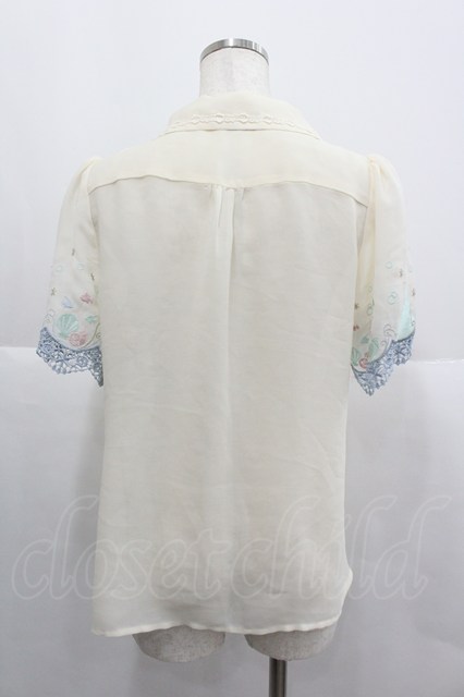 axes femme / チャーム付きカラー刺繍ブラウス アイボリー I-25-12-24-071-AX-BL-SA-ZI