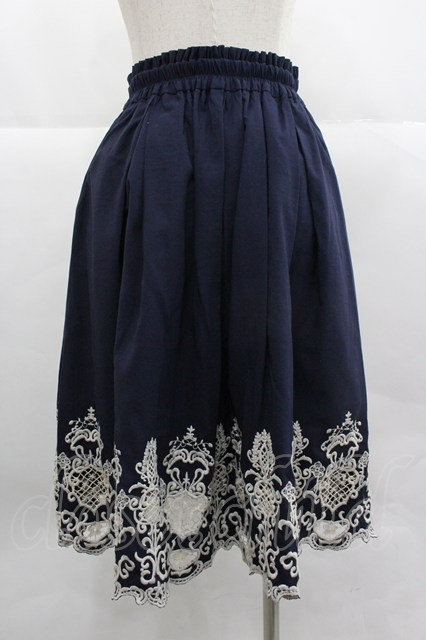 axes femme / 裾刺繍スカート M ネイビー I-25-12-24-123-AX-SK-TE-ZI