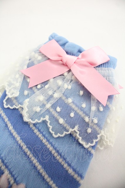 Angelic Pretty / Candy Ribbon ストライプクルー丈ソックス 青 I-25-12-24-032-AP-ZA-SA-ZI [2100060000030139-I-25-12-24-032-AP-ZA-SA-ZI]