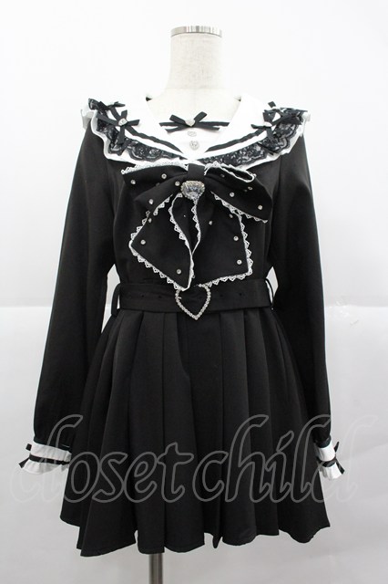 DearMyLove / ハートビジューリボンレース学園ワンピース M 黒X白 I-25-12-24-116-EL-OP-SA-ZI
