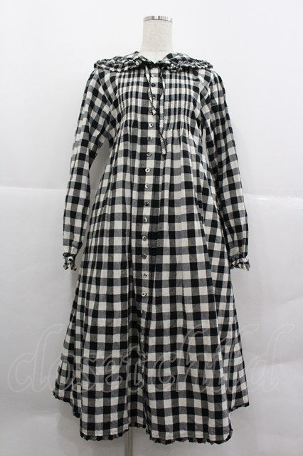 PINK HOUSE / ギンガムチェックフードワンピース 黒X白 I-25-12-24-108-LO-OP-SA-ZI