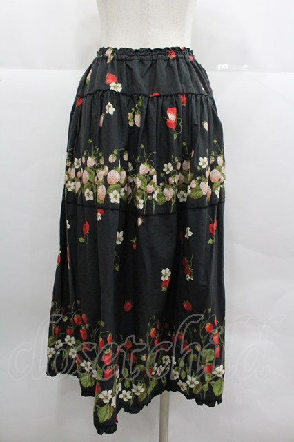 PINK HOUSE / いちごプリントスカート 黒X赤 I-25-12-24-124-LO-SK-SA-ZI [2100060000048294-I-25-12-24-124-LO-SK-SA-ZI]