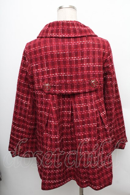 axes femme / ツイードチェックコート 赤 S-25-12-25-030-AX-CO-TK-ZS