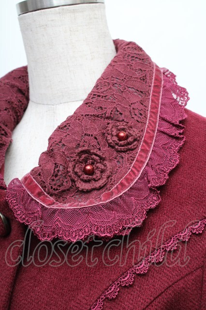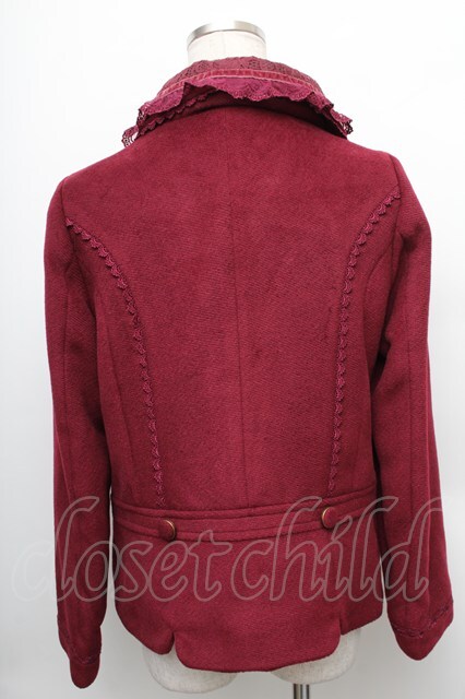 axes femme / モチーフ付レース襟ショートコート ワイン S-25-12-25-032-AX-CO-TK-ZS
