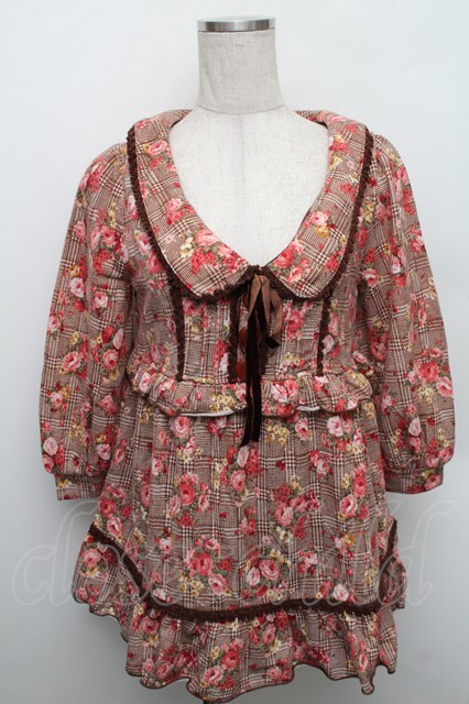LIZ LISA / 花柄チェックチュニック 0 ブラウン S-25-12-25-036-LO-TO-TK-ZS [2100020000035425-S-25-12-25-036-LO-TO-TK-ZS]