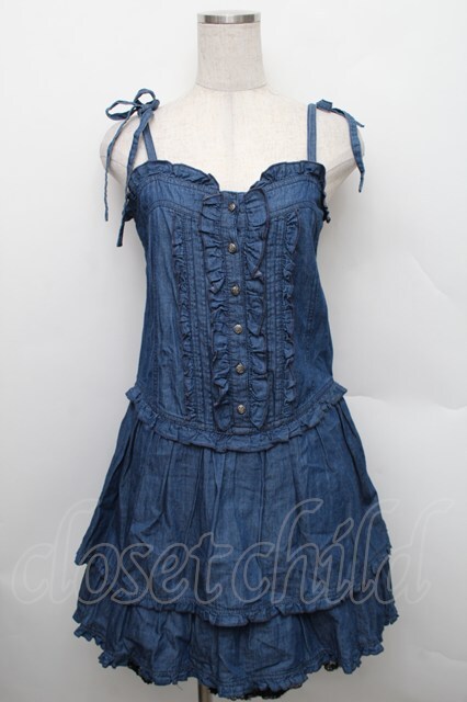 axes femme / 2段フリルデニムワンピース ブルー S-25-12-25-045-AX-OP-TK-ZS [2100020000035444-S-25-12-25-045-AX-OP-TK-ZS]