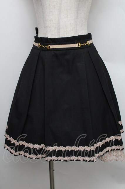 axes femme / レース付きタックスカート 黒 S-25-12-25-061-AX-SK-HR-ZS