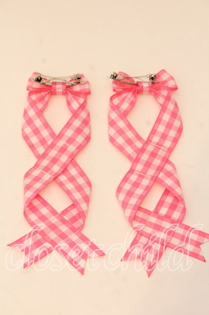 LOTUS ribbon / ツインテールリボンバレッタ ピンク×シロギンガム O-25-12-26-071-EL-ZA-IG-OS [2100080000069441-O-25-12-26-071-EL-ZA-IG-OS]