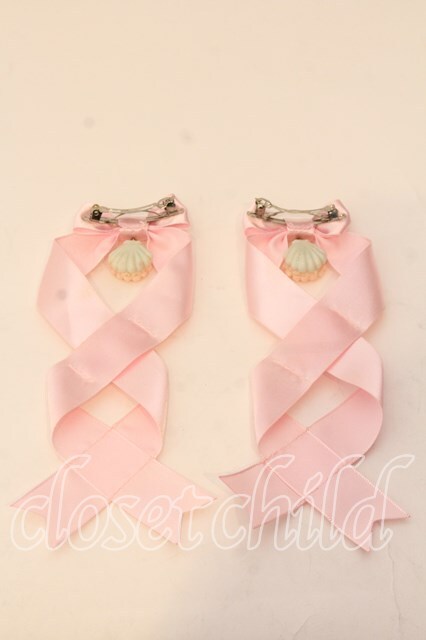 LOTUS ribbon / ツインテールリボンバレッタ ピンク×シェルモチーフ O-25-12-26-075-EL-ZA-IG-OS