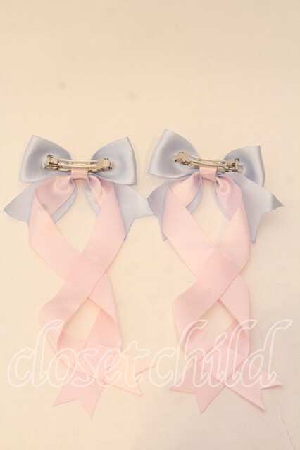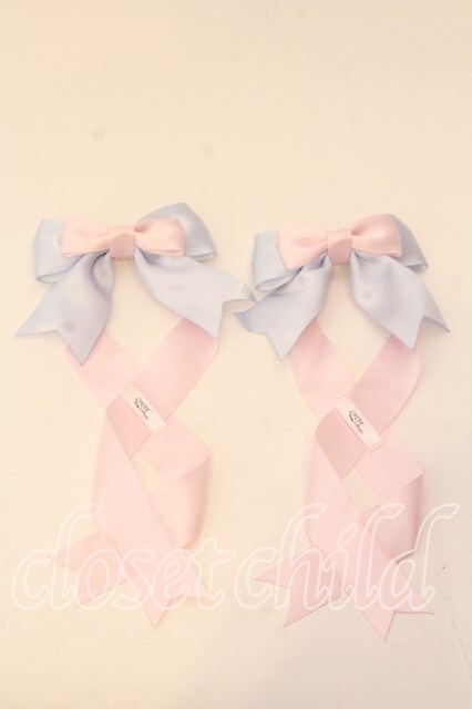 LOTUS ribbon / ツインテールリボンバレッタ サックス×ピンク O-25-12-26-079-EL-ZA-IG-OS