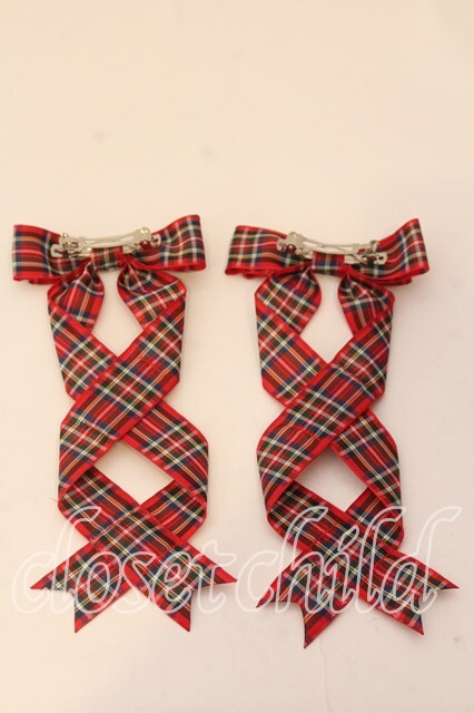 LOTUS ribbon / ツインテールリボンバレッタ アカタータンチェック O-25-12-26-082-EL-ZA-IG-OS
