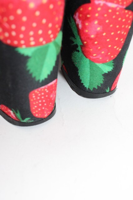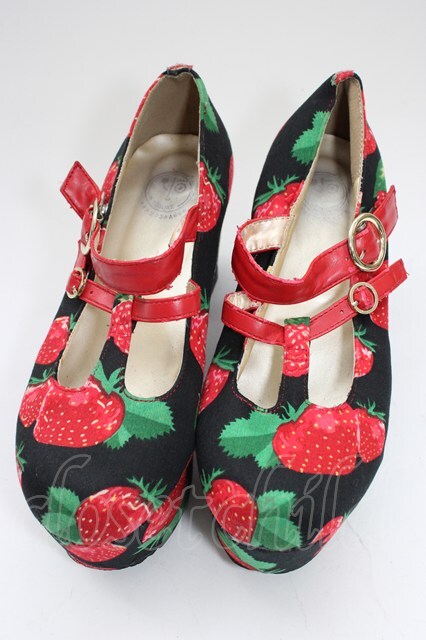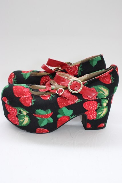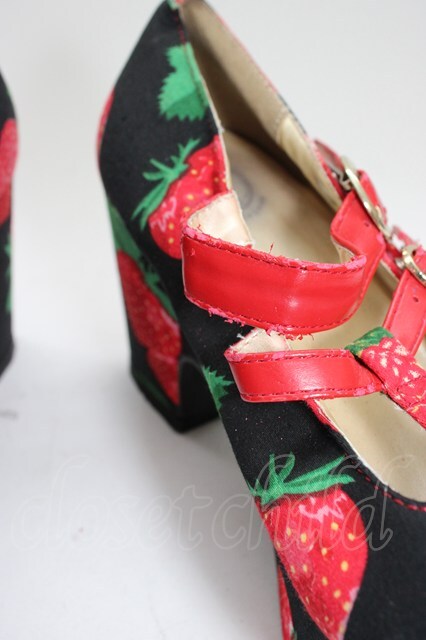 YOSUKE / いちご柄厚底パンプス M 黒X赤 T-26-01-04-029-PU-SH-SA-ZT