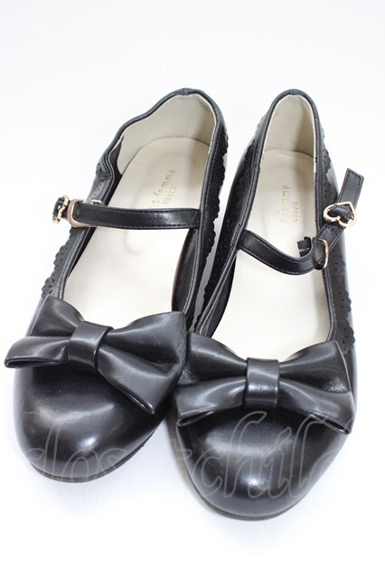 axes femme kawaii / ローヒールリボンパンプス L 黒 T-26-01-04-030-AX-SH-SA-ZT