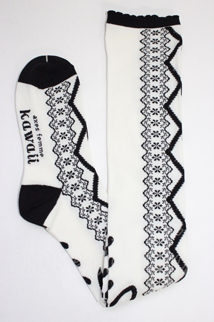 axes femme kawaii / レースアップ柄オーバーニー クロ T-26-01-04-009-AX-ZA-SA-ZT