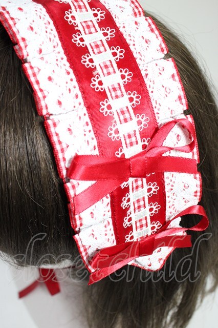 Snowdrop to Saint Maria / ギンガムチェックリボンヘッドドレス 赤X白 T-26-01-04-017-0-AC-SA-ZT [2100060000029496-T-26-01-04-017-0-AC-SA-ZT]