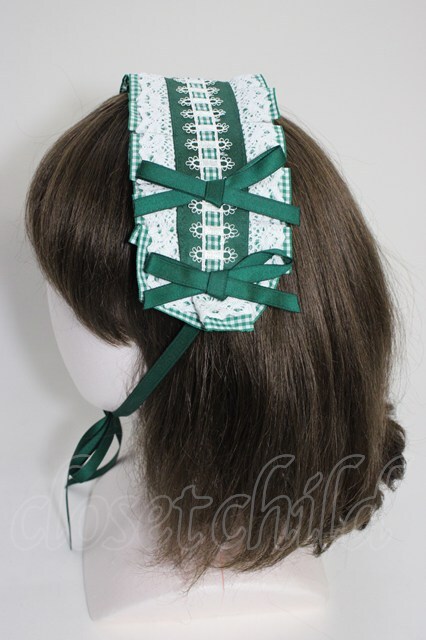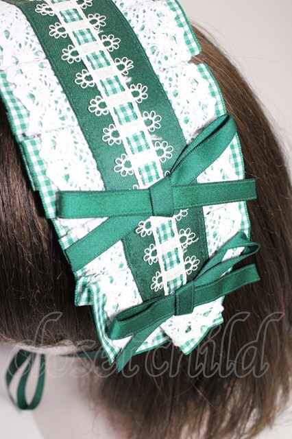 Snowdrop to Saint Maria / ギンガムチェックリボンヘッドドレス 緑X白 T-26-01-04-015-0-AC-SA-ZT