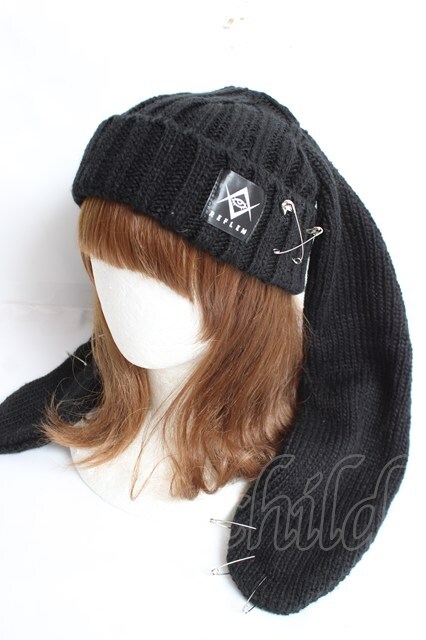REFLEM / 安全ピン付きうさ耳ニットキャップ F ブラック Y-25-12-27-031-PU-AC-SZ-ZY