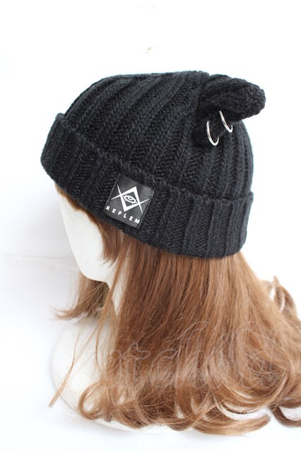 REFLEM / リングピアス付き猫耳ニット帽 F ブラック Y-25-12-27-032-PU-AC-SZ-ZY [2100070000057682-Y-25-12-27-032-PU-AC-SZ-ZY]