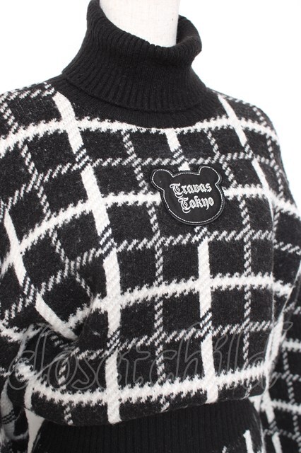 TRAVAS TOKYO / チェック柄ジャカードニットワンピース F ブラック Y-25-12-27-076-PU-OP-SZ-ZY