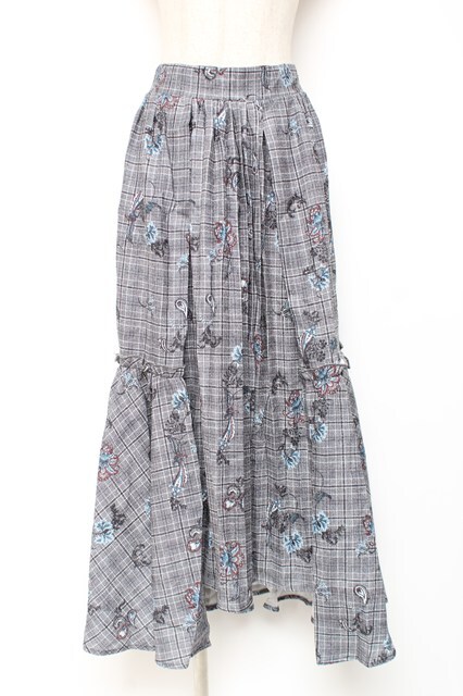 axes femme NOSTALGIE / ペイズリー×チェックスカート F 黒 Y-25-12-27-089-AX-SK-SZ-ZY