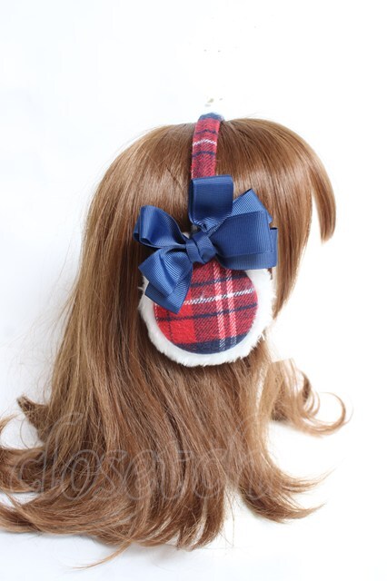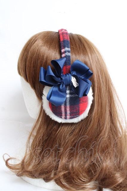 Emily Temple cute / タータンイヤーマフ 赤×紺 Y-25-12-27-036-ET-ZA-SZ-ZY