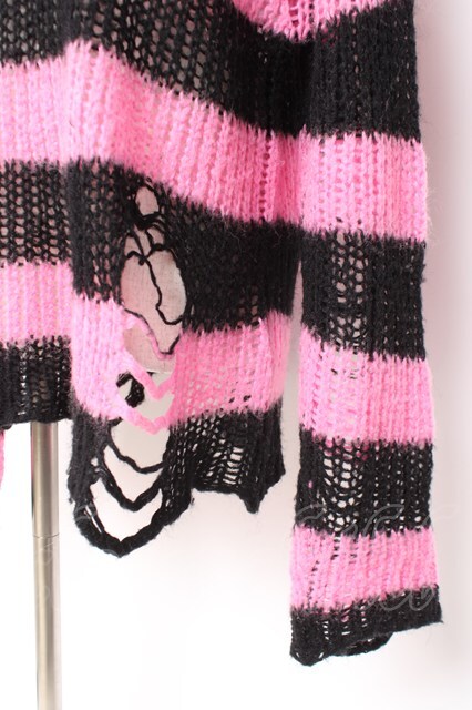 REFLEM / ダメージボーダーニット F ブラック×ピンク Y-25-12-27-058-PU-TO-SZ-ZY