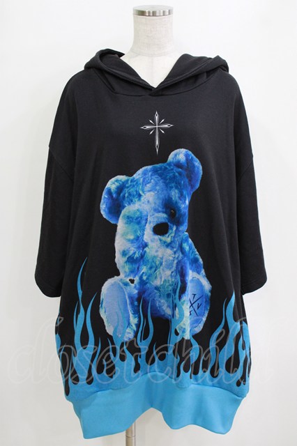 TRAVAS TOKYO / Fire bear H/S Hoodie ブラック×ブルー H-26-01-06-058-PU-TO-KB-ZT0108H [2100030000082219-H-26-01-06-058-PU-TO-KB-ZT0108H]