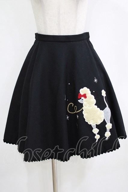 Emily Temple cute / プードルアップリケウールスカート ブラック H-26-01-06-024-ET-SK-KB-ZH