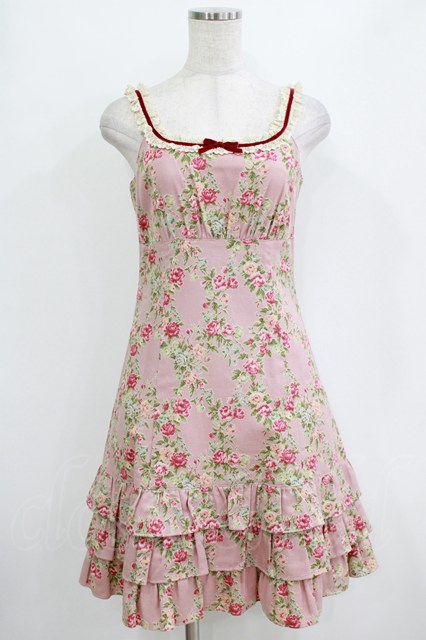 Emily Temple cute / ブーケ裾フリルノースリーブワンピース ピンク H-26-01-06-025-ET-OP-KB-ZH