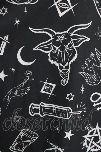 REFLEM / オカルト総柄シャツ モノクロ H-26-01-06-056-PU-BL-KB-ZH