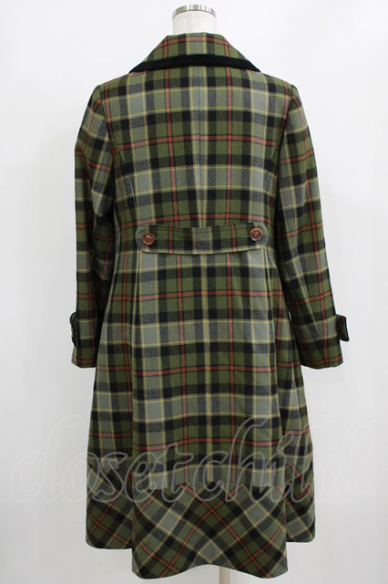Jane Marple / ウールタータンのダブルボタンコート グリーン H-26-01-06-031-JM-CO-KB-ZH