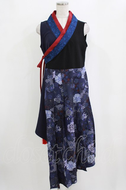 Qutie Frash / 着物プリーツチュニック ネイビー H-26-01-06-048-QU-TO-KB-ZH [2100030000082158-H-26-01-06-048-QU-TO-KB-ZH]