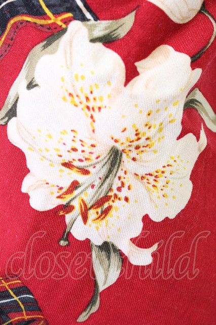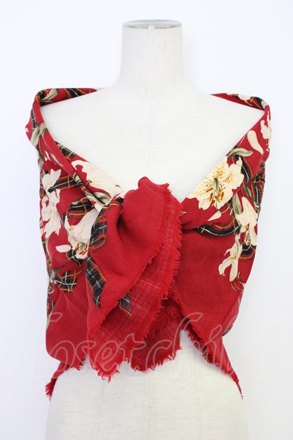 INGEBORG / 百合&リボン大判スカーフ レッド T-25-12-28-024-LO-ZA-SA-ZT