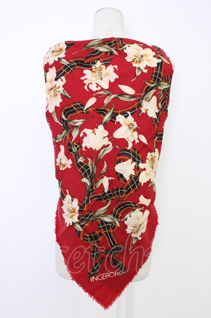 INGEBORG / 百合&リボン大判スカーフ レッド T-25-12-28-024-LO-ZA-SA-ZT [2100060000028355-T-25-12-28-024-LO-ZA-SA-ZT]