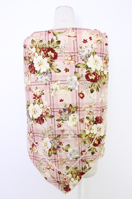 INGEBORG / 花&チェック大判スカーフ ピンク T-25-12-28-027-LO-ZA-SA-ZT