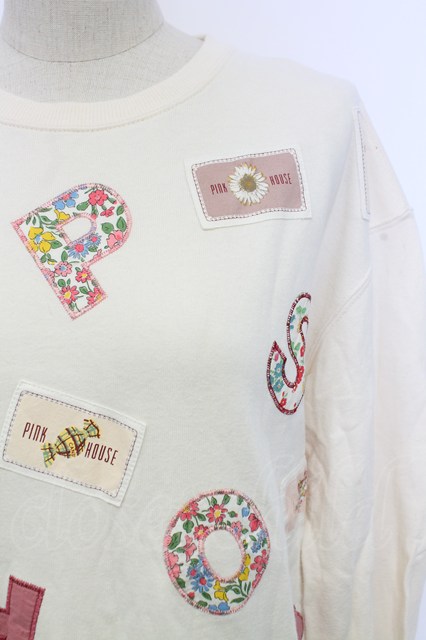 PINK HOUSE / ワッペン&アルファベットスウェット アイボリー T-25-12-31-002-LO-OP-SA-ZT