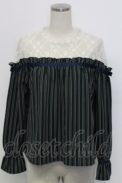 axes femme / レース切替レジメカットプルオーバー グリーンXアイボリー T-25-12-31-005-AX-TO-SA-ZT