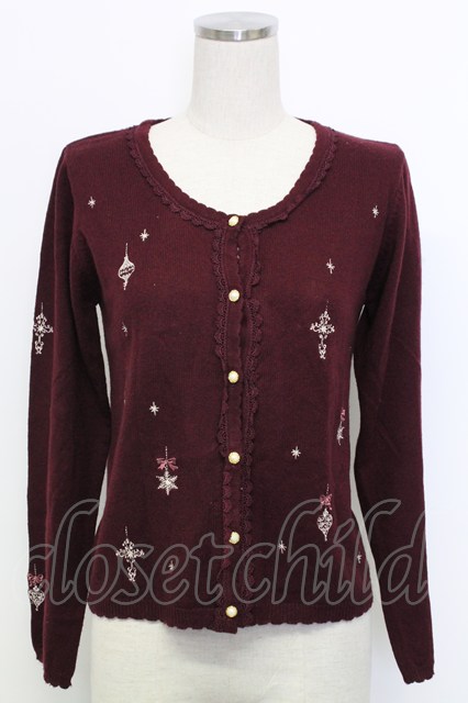 axes femme / オーナメント刺繍ニットカーディガン ボルドー T-25-12-31-006-AX-TO-SA-ZT [2100060000041638-T-25-12-31-006-AX-TO-SA-ZT]