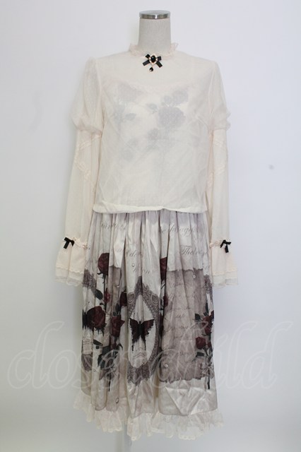 熊逗醤 / 薔薇&蝶プリントジャンパースカートセット アイボリー T-25-12-31-012-0-OP-SA-ZT