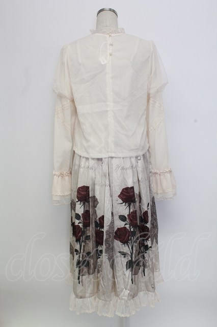 熊逗醤 / 薔薇&蝶プリントジャンパースカートセット アイボリー T-25-12-31-012-0-OP-SA-ZT [2100060000044498-T-25-12-31-012-0-OP-SA-ZT]
