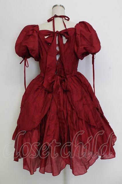 Bramble Rose / フラワーモチーフラメオーガンジー半袖ワンピース ボルドー T-25-12-31-014-0-OP-SA-ZT