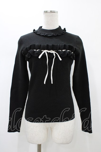 Ank Rouge / フリルリボンプルオーバー M ブラック H-26-01-07-1060-CA-TO-NS-ZH
