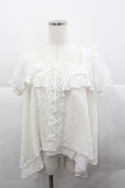 axes femme / レースアップAラインブラウス 白 I-25-12-27-015-AX-BL-SA-ZI