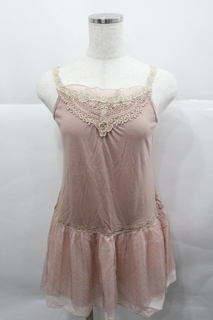 axes femme / ラメレース使いロングタンク M ピンク I-25-12-27-024-AX-TO-TE-ZI