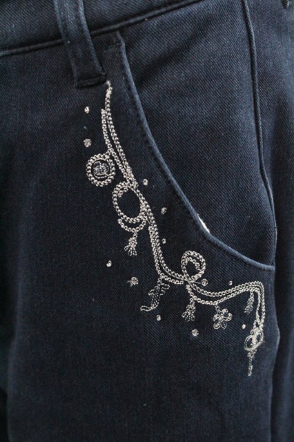 axes femme / 刺繍デニムパンツ 紺 I-25-12-27-115-AX-PA-SA-ZI