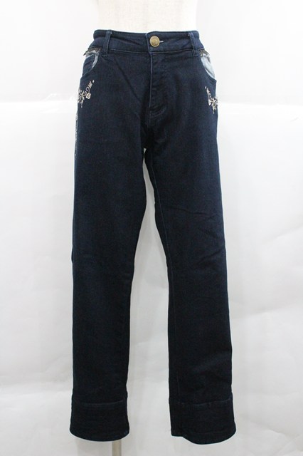 axes femme / ストライプ使い薔薇刺繍デニムパンツ 青デニム I-25-12-27-121-AX-PA-SA-ZI [2100060000048076-I-25-12-27-121-AX-PA-SA-ZI]