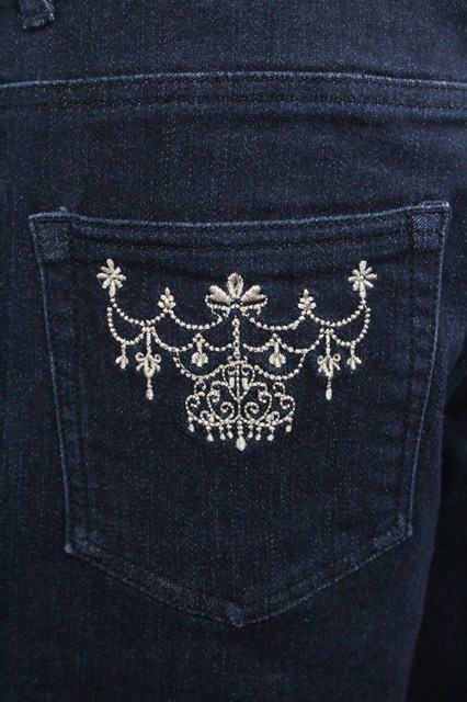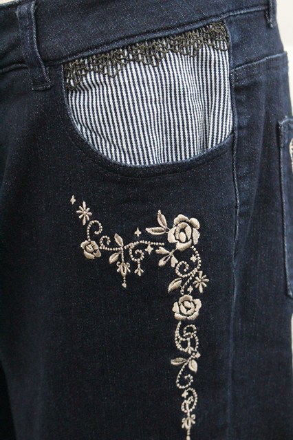 axes femme / ストライプ使い薔薇刺繍デニムパンツ 青デニム I-25-12-27-121-AX-PA-SA-ZI