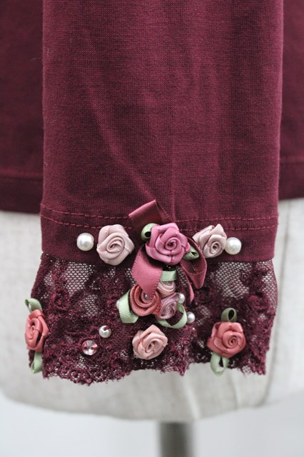 axes femme / プチローズリボンカットソー ボルドー I-25-12-27-049-AX-TO-SA-ZI