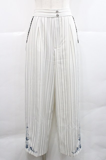 axes femme / 裾刺繍ストライプワイドパンツ 白X黒 I-25-12-27-116-AX-PA-SA-ZI [2100060000048425-I-25-12-27-116-AX-PA-SA-ZI]