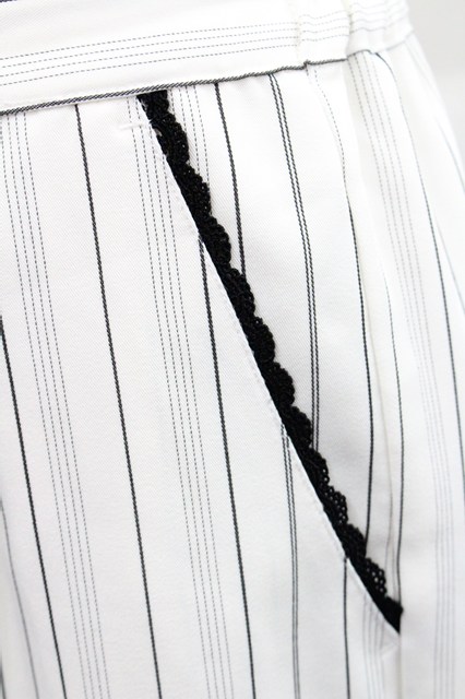axes femme / 裾刺繍ストライプワイドパンツ 白X黒 I-25-12-27-116-AX-PA-SA-ZI
